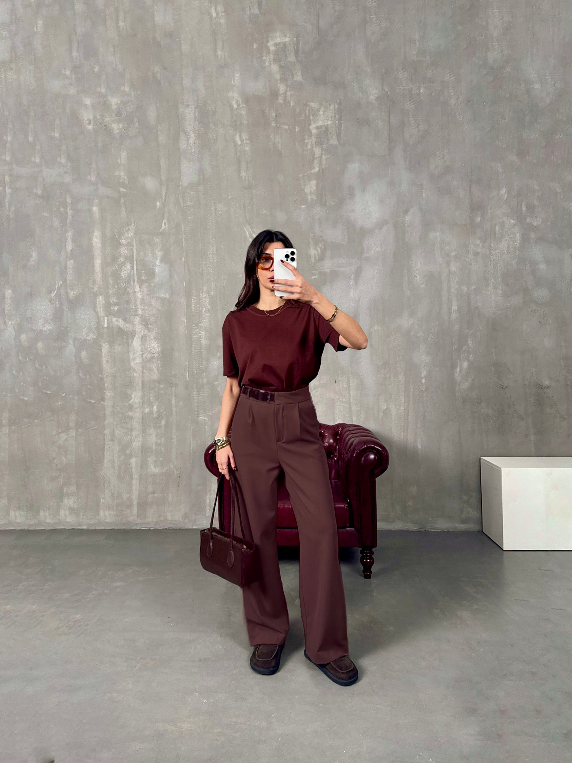 Unsere Elegante Hose mit integriertem Gürtel bietet einen geradlinigen Schnitt und eine high-waist Passform. Die Länge der Hose beträgt ca. 108cm.